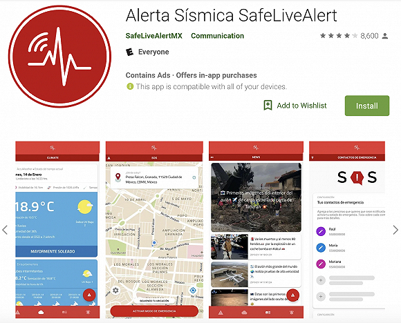 在智能手机时代到来后,应用程序也成为了一种新的预警发布方式。如墨西哥的SafeLiveAlert便已拥有30万用户,依托SASMEX技术,在部分地区可实现提前140秒发布预警,而且可以在断网情况下进行紧急通讯。