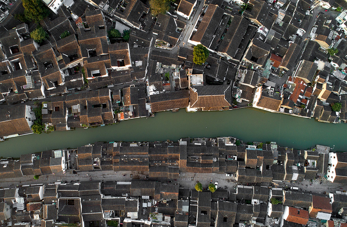俯瞰苏州山塘街。(摄影:梁寿成)