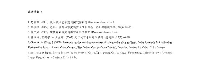 2006年5月,同济大学的苟爱萍与南京工业大学的王江波曾做过一件这样的事情:他们用谷歌、百度和新浪三个浏览器搜索关坚持“城市色彩规划”(Urban Color Plan),根据搜索出来的结果,锁定了55个已经开展城市色彩规划的城市。这些城市包括4个直辖市、2个经济特区和14个省会城市。它们之中,有些已经完成了色彩规划,有些完成了相关调研,有些推出了相关的法规等,或者,已经把其列入计划之中。从地图上观看这些城市的位置,大多分布在东部经济较为发达的地区。