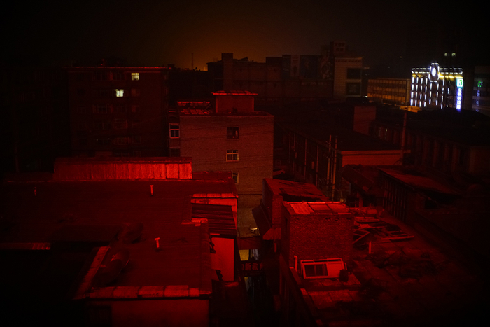 午夜时分的山西临汾街景。(摄影:杨一凡)