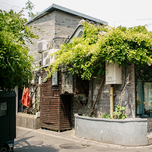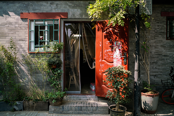 北京胡同一景。这是极为“经典”的颜色搭配:灰色调的外墙与砖红色的门窗。