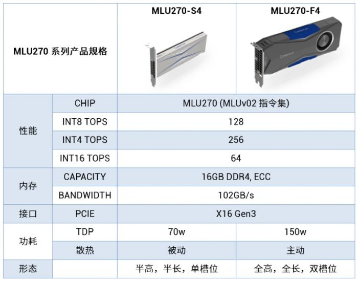 其中,MLU270-S4 型板卡(半高半长)面向数据中心部署,集成16GB DDR4 内存,支持ECC;MLU270-F4型板卡(全高全长)采用主动散热设计,面向非数据中心部署场景,集成16GB DDR4 内存,支持ECC。而面向人工智能训练任务的思元270训练版板卡产品将于本年度第四季度推出。