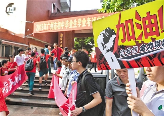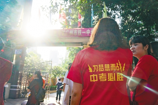 广东实验中学考点,师长们为考生加油鼓劲