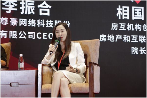 图:我爱我家控股集团战略发展中心总经理张霞女士在专题论坛上分享自己的观点