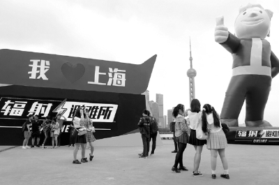 巨型辐射小子登陆上海滩 与东方明珠隔江相望