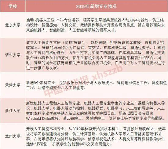 此外,人工智能专业成为各大高校重点培育方向。根据2019年3月教育部网站数据,人工智能专业被列入新增审批本科专业名单,全国共有35所高校获首批建设资格。其中北京大学、清华大学等高校已经新增开设了AI等本科生专业。