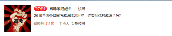 这两天,全国各省高考成绩陆续公布,高考成绩的话题妥妥占领微博热搜第一的位置。