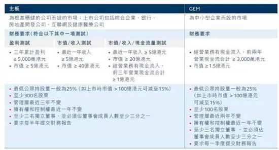 香港创业板上市要求更低,主要是经营业务要有现金流入,前两年营业现金流合计≥3000万港元,市值≥1.5亿港元。