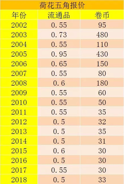 03年到06年的荷花五角流通品价格也在0.6-1元之间。这些年份的荷花五角,在我们日常生活中还能经常看到