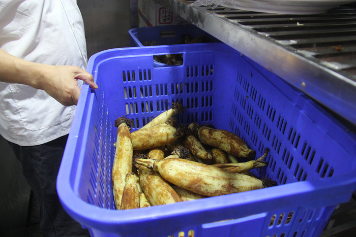 厨师从冷库中取出食材,马上开始加工