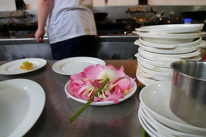 今天,解放日报·上观新闻记者前往饭店后厨“探秘”,目睹了荷花蜕变为各色美食,以及各色美食争相“假装”成荷花的过程。