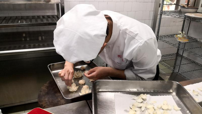 李建钢透露,“三色小笼”难点主要在揉面,力气太小,三种颜色的面皮连不起来,久蒸容易散架、露馅;力气过了,颜色又串了,前后经过几十次试验,才掌握了控制力道的诀窍。