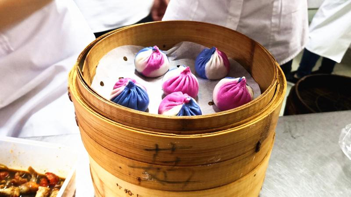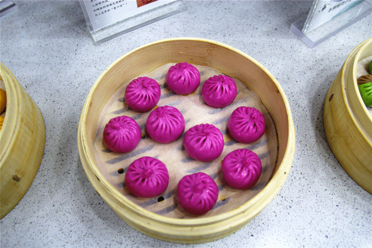 普通的小笼包,白白嫩嫩,可曾见过一只小笼上有三种颜色?