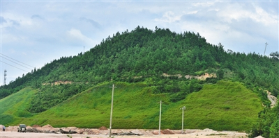 龙南县东江富坑稀土矿山,深绿色为原始植被,浅绿色为人工复垦复绿后的植被,目前这一区域正在打造东江富康工业园。B04-B05版摄影/新京报记者 阎侠