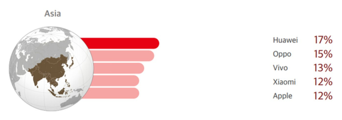 如果只看中国市场的Top5,那三星手机就只能归在other里面了。