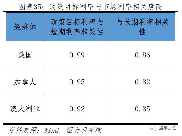 从可测性及可控性来看,在利率渠道传导通畅的情况下,市场化形成的利率可以随时观测,评估货币政策实施效果,而信贷渠道信号频率较低,对于调控的及时性较弱。从相关性来看,在美加澳三国国家价格型货币政策传导中,利率作为中介目标能够有效传导至短期及中长期利率,政策目标利率对于短期利率的传导相关性均高于0.9,对于长期利率传导相关性高于0.8,有效降低实体经济融资成本。