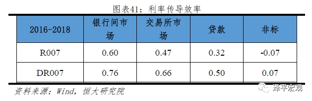 其次,当前我国银行间市场、债券市场、贷款以及非标市场间的利率传导存在割裂。政策利率除对银行间市场传导效率较高以外,对交易所市场、贷款以及非标的传导效率依次递减。究其原因,首先,交易所市场与银行间市场存在人为分裂,由于两者监管及准入门槛均有所不同,资金风险偏好在交易所市场高于银行间市场,使得在实际操作中,交易所市场利率水平及波动率均显著高于银行间市场,对于利率传导效率形成磨损。此外,我国债券市场还存在着流动性不足、金融衍生产品较少等问题,弱化传导效率。其次,存贷款市场的基准利率以及存款刚性使得银行负债端对于市场利率变化反应并不明显,进而难以引发银行负债端成本向资产端利率的传导。最后,非标作为因监管套利而起、因监管加强而落的融资方式,利率除了反应市场资金供求关系外,更加受到监管形势影响,利率与货币政策导向有所割裂。当前非标仍作为实体经济融资重要的补充方式,利率传导机制打通仍面临巨大障碍。
