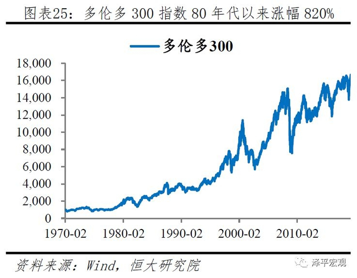相比于信贷渠道传导容易引发房地产资产价格泡沫,货币政策的利率传导渠道对于股市更加有利。美加澳在80-90年代完成货币政策框架转型后,股票市场均迎来了长牛,道琼斯工业指数、多伦多300以及国际货币基金组织计算的澳洲股票指数在80年代以来涨幅分别达到了2521%、820%及930%。信贷渠道由于和房地产价格的紧密相连,易产生相互强化的倍数效应,而利率渠道对于股市而言,一方面基于未来收入的折现,低利率有利于抬高估值,另一方面,较低的利率能够有效降低企业各项融资成本,提高投资意愿,有利于提升盈利。在估值面以及基本面的双重刺激下,股票市场迎来双重利好,形成长牛走势。