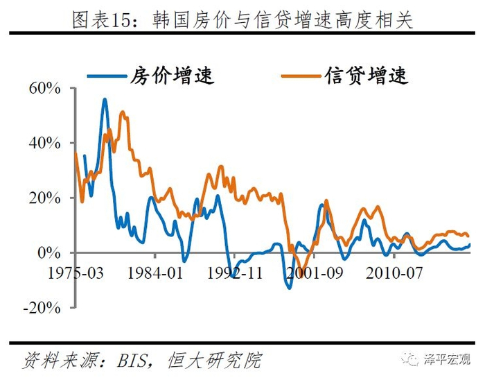 在房价方面,货币政策通过信贷渠道传导极易与房地产价格相互强化。由于信贷渠道传导需要抵押物的固有特性,信贷增长不可避免刺激房地产价格上行,抬升金融周期,同时房地产价格上涨也会进一步刺激信贷增长,两者之间存在明显双向因果关系。这一现象在主要国家及经济体数据中均可得到验证。以韩国与德国为例,两者房价增速与信贷增速相关性均超过0.5。