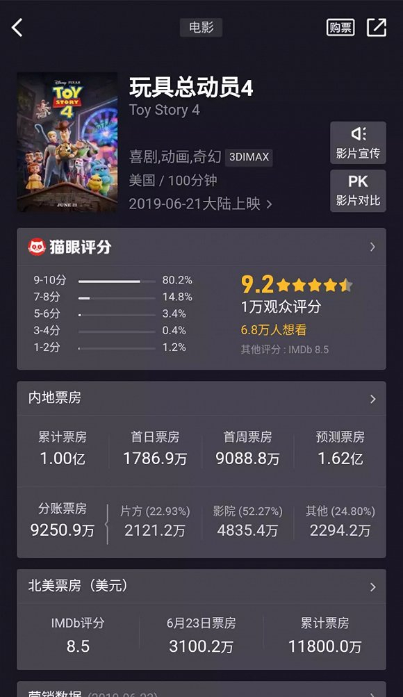 宣发缺位、电影的隐形门槛,最终使得《玩具总动员4》在票房表现上呈现乏力的状态。