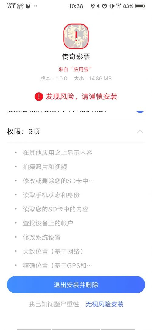 正如这位法律界专家所说,我们在应用宝中也发现了一些应用披上了合法名称的外衣,例如我们下载了一款名为“湖北旅游网”的应用,从名称上来看,你很难将其和赌博联系在一起,但是这款软件下载安装之后,在用户打开App后,它会自动更新版本,更新后变为一款叫做“爱彩彩票”的非法赌博网站。