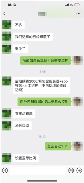 在数据来源问题上,这位卖家称,数据源将接入外界数据。在记者追问下,他表示,数据可通过后台进行控制。“直接点输赢”,甚至可以设置为自动,即“设置盈亏比例”。