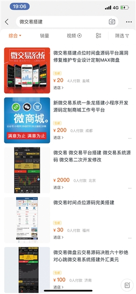 新京报记者在淘宝上搜索“微交易搭建”,发现不少从事微交易平台搭建的商家。记者随机联系了其中一个自称专业从事微盘(微交易)平台搭建的卖家。