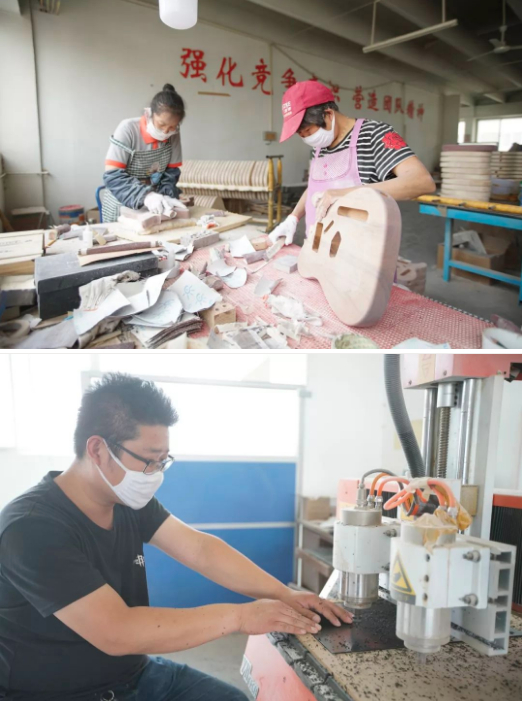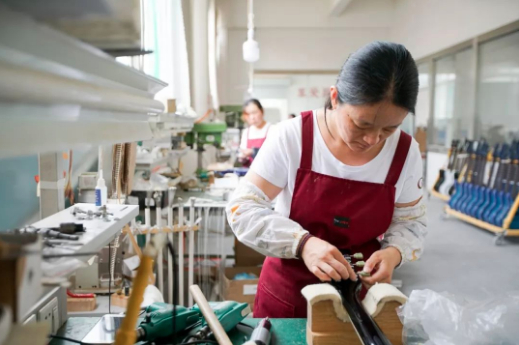 如今,小镇上常年务农的农民,在他的工厂里已经成为熟练的“制琴师”“调音师”。你从国外买回来的一把名牌吉他,很有可能就出自他的工厂。
