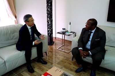 2019年6月25日,驻几内亚大使黄巍会见几总理福法纳。几总理外事顾问班古拉等在座。