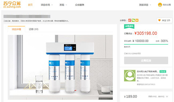 吊诡的是,黄安发现,在签订补充协议三天后,4月15日,其公司生产的净水器正式上线苏宁众筹平台,当天即达到并超出了约定的30万元众筹金额目标。