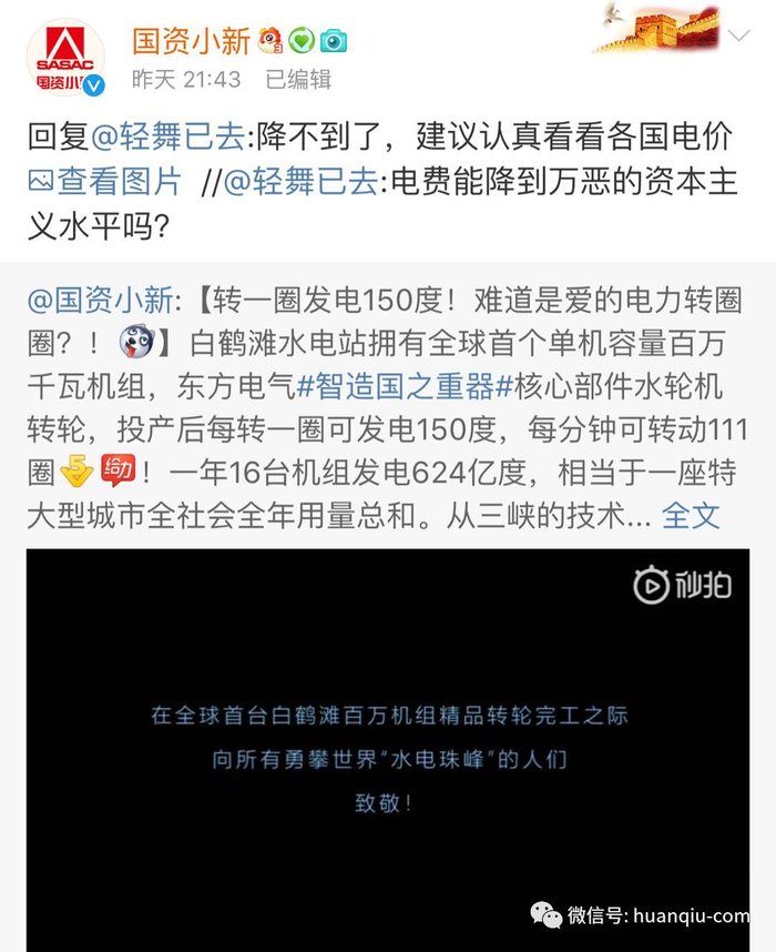 “电费能降到万恶的资本主义水平吗?”有网友向国务院国资委新闻中心官方微博国资小新提出了这个问题。随后发生的事,过程很……惨烈……结局,有点暖。