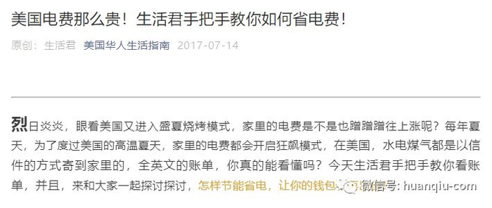 “美国华人生活指南”微信号还曾手把手教人如何看电费账单、如何省电费,美国电费有多贵,侧面了解下。↓