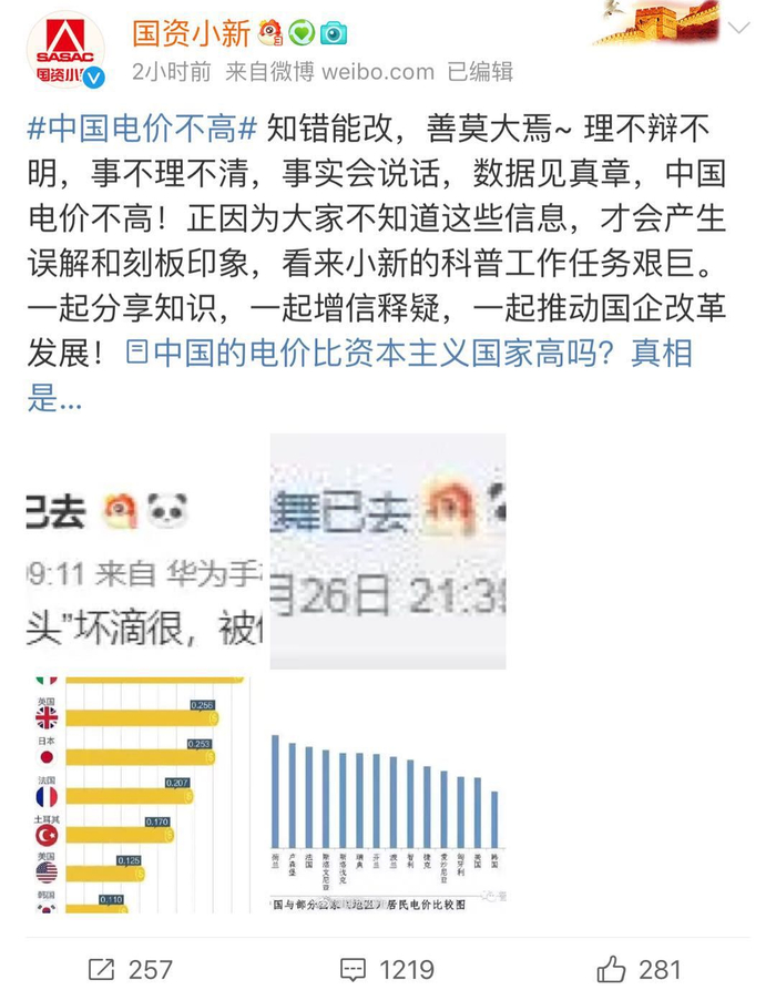 网友@轻舞已去 为此提问@国资小新: “电费能降到万恶的资本主义水平吗?”