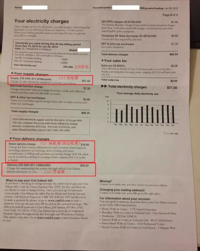 在美国如何看电费账单?