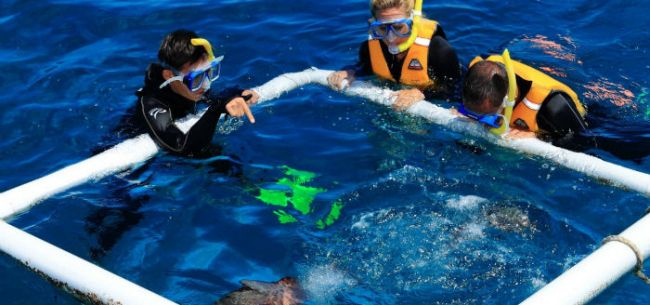 (图片:游客浮潜看大堡礁,来源:凯恩斯当地旅游部门提供)