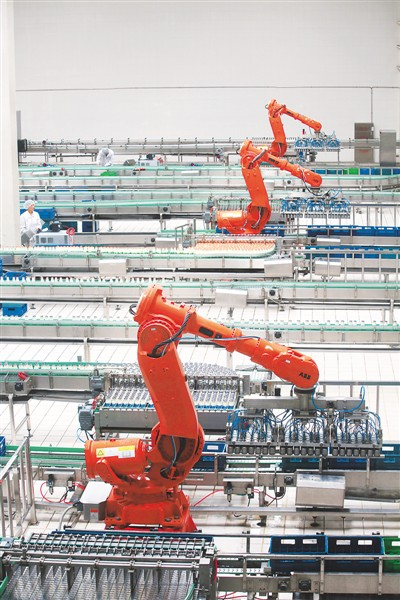 三元食品公司的现代化牛奶生产线。 |