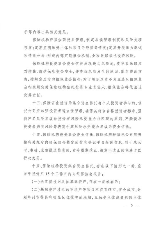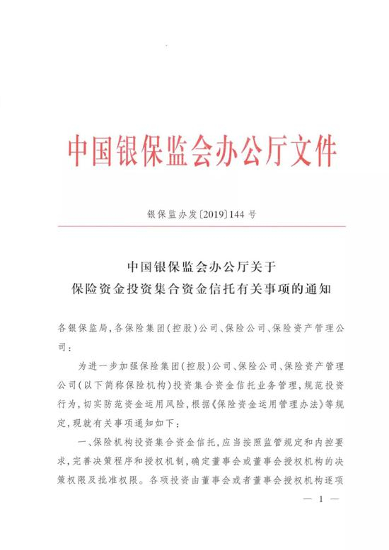 重磅!中国银保监会办公厅关于《保险资金投资集合资金信托有关事项的通知》全文在此!