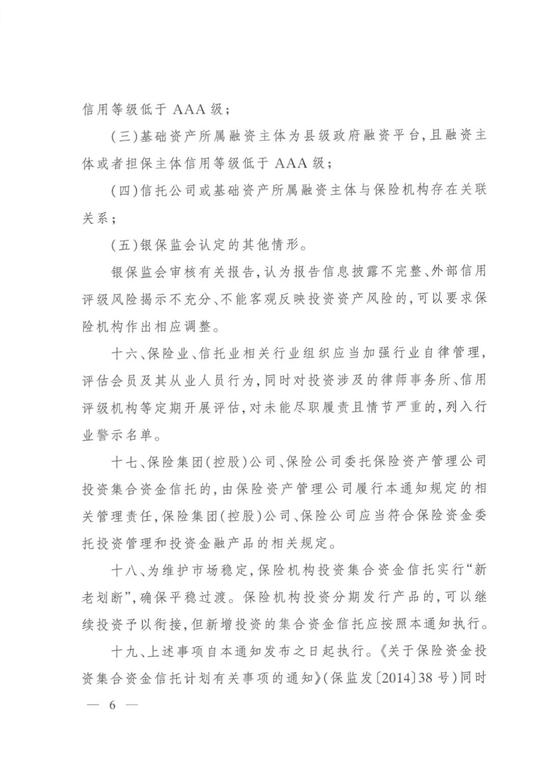 十七、保险集团(控股)公司、保险公司委托保险资产管理公司投资集合资金信托的,由保险资产管理公司履行本通知规定的相关管理责任,保险集团(控股)公司、保险公司应当符合保险资金委托投资管理和投资金融产品的相关规定。