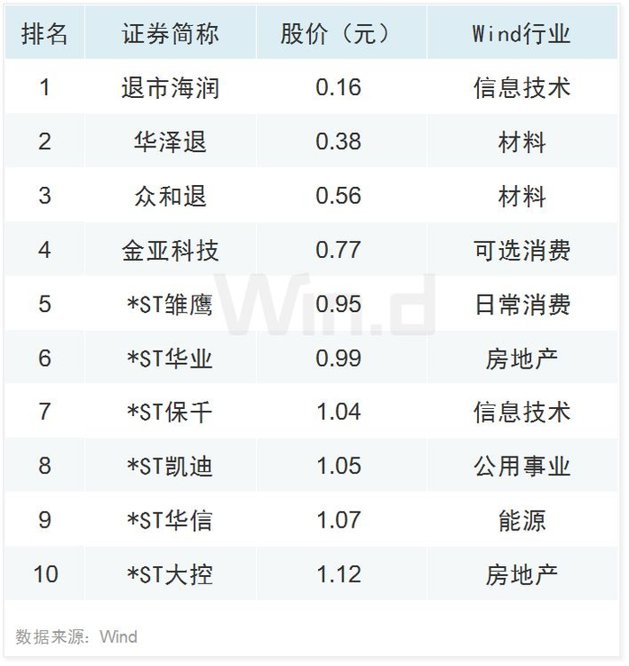 低价股TOP10
