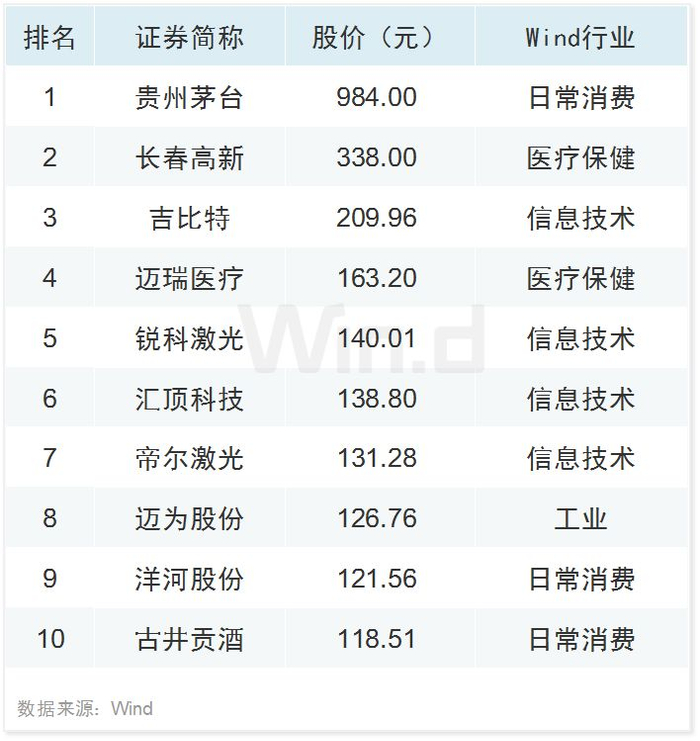 高价股TOP10
