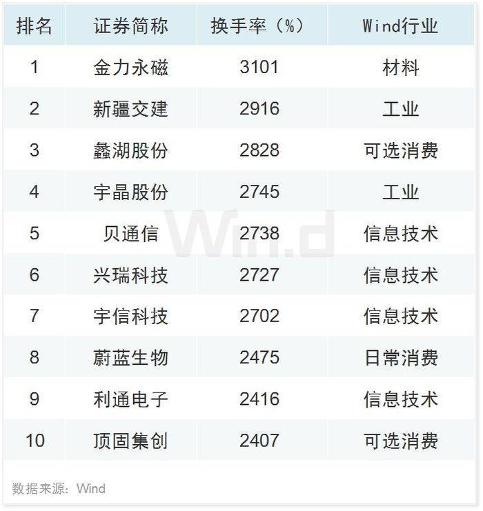 换手率TOP10