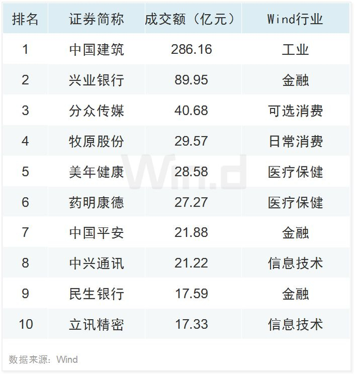 陆股通活跃股TOP10