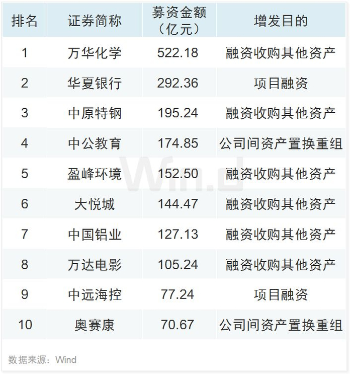 定增融资TOP10