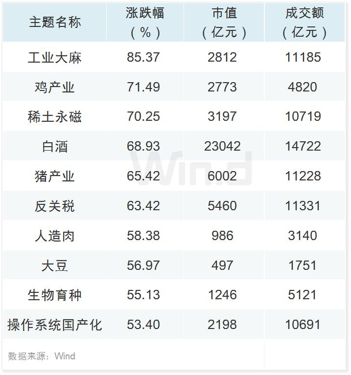 上半年,A股沾“麻”就飞。工业大麻板块累计上涨85.37%,遥遥领先;鸡产业和稀土永磁主题紧随其后,涨幅均超过70%。