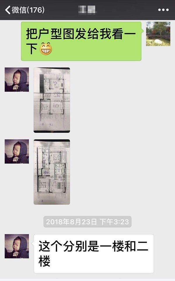销售顾问在微信聊天中向业主表示,这个三层的下叠别墅,其中两层在地面上。 业主 供图连日来,多名南京升龙桃花园著的业主向澎湃新闻(www.thepaper.cn)反映,该楼盘属于叠加别墅新盘,下叠的样板房显示两层地面、一层地下的格局,让他们特别满意,因此决定花重金购买。