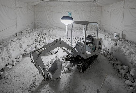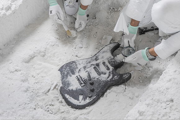 对于挖掘现场,我最早灵感来源是我得到的第一个照相机,我后来用火山灰来重新做了这个照相机,这个照相机通过用火山灰的再造,它变得非常的古老,而且从观者的角度来看,因为我用火山灰来做了这个照相机,所以照相机本身的故事出现了很大的变化,我们会觉得这个照相机是非常古老的物件,它有可能是水晶或者是火山灰。在过去几千年时间的流逝当中慢慢慢慢形成的,所以这对于现在的观者来说就是一个很困惑的体验,怎样去理解这种时间与时间之间的冲撞,这也是我在现在的艺术作品当中经常融入的一个元素。