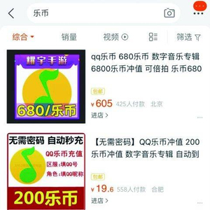 网上乐币代充店铺。手机截屏