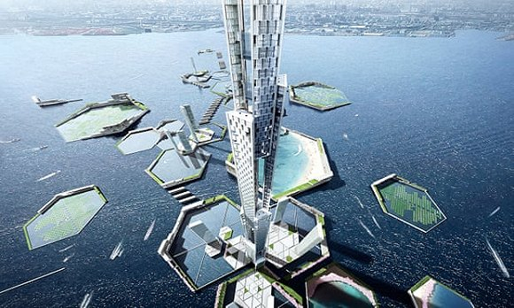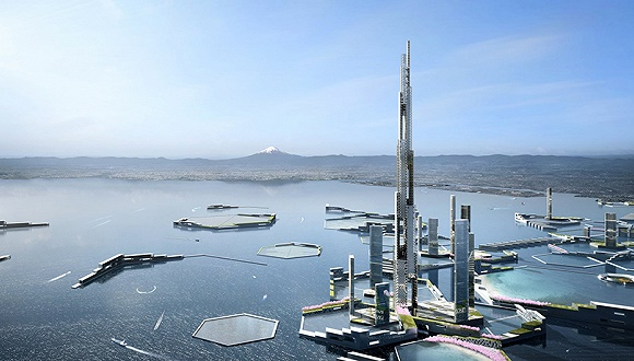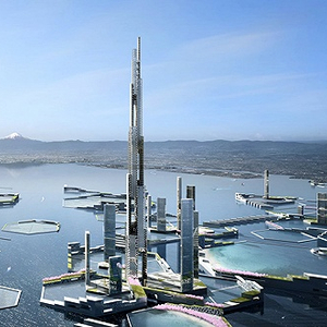 美国企业KPF建筑事务所(Kohn Pedersen Fox)提出了“天空英里塔”( Sky Mile Tower),这是一座420层高的摩天大楼,属于“下个东京2045”计划(Next Tokyo 2045)的一部分,该计划概述了打造环保区阻止东京湾海平面上升的方法。
