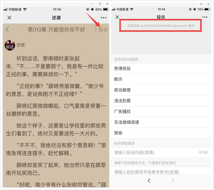 这些钻空子的人会先在网站上发布一部分低俗网文,截取某一“精彩”片段。当你看到一半时,文章戛然而止,提示跳转到微信、关注公众号才可以继续阅读。