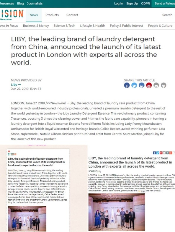 原标题:立白洗衣精华液伦敦首发 引外媒热议